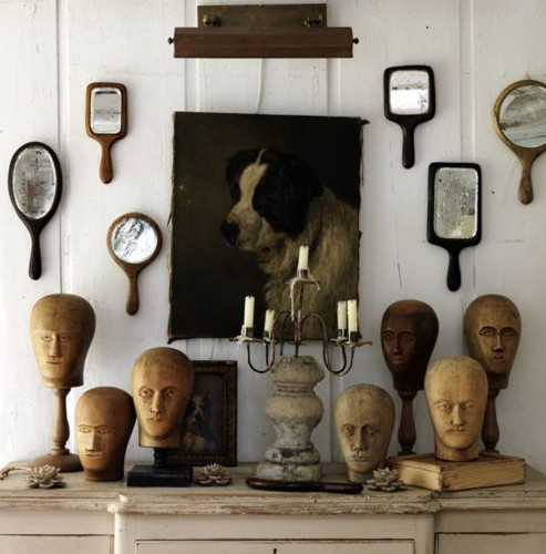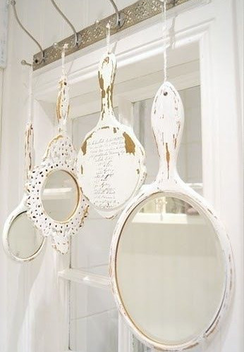 You may choose a mirror that will make a statement like the one here, or you may choose a grouping of mirrors, ranging from three to an entire wall. Antique markets are full of mirrors ready to hang or that can easily be transformed into a striking focal point for your home. You may want to collect a certain type of mirror or a collection such as or hand mirrors ... there are so out there to choose from.