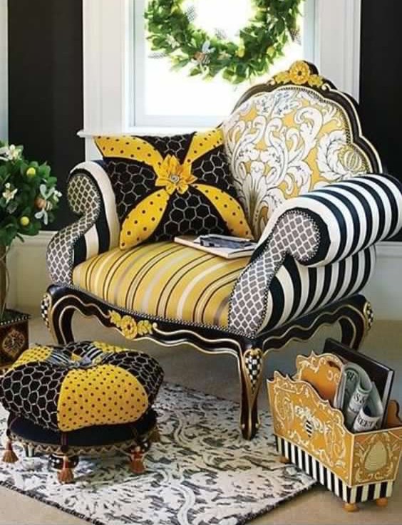 Shouldn't there always be a focal point in a room? And wouldn't is be fabulous if it was also a work of art? And why shouldn't it be colorful and cheery! I always love a single chair sitting alone, with a small side table for wine or tea, a great floor lamp, and an ottoman for your tootsies. A place to curl up with a great book and make the world go away ... for a while.